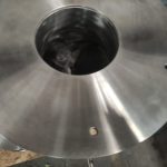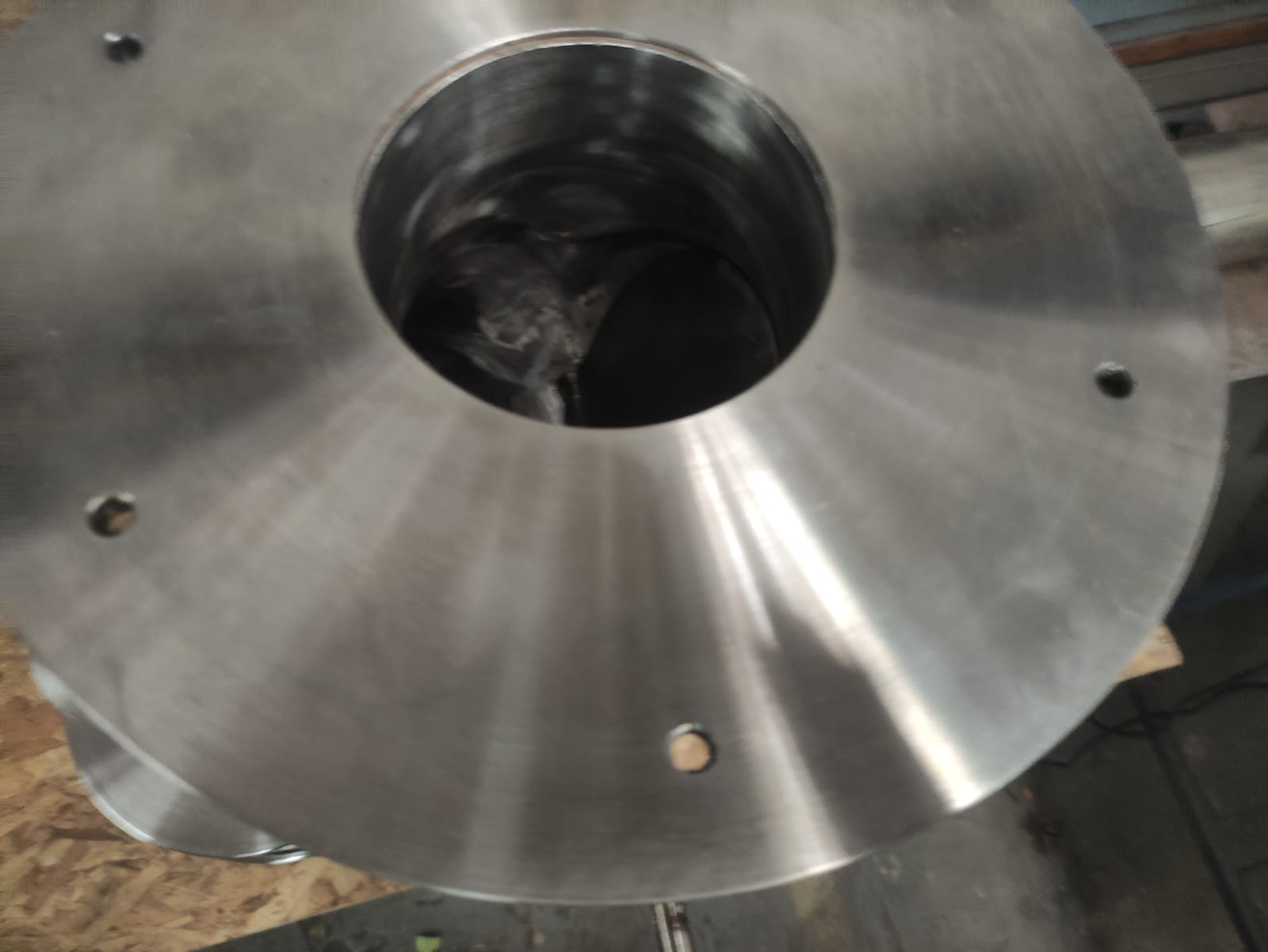 La pieza fue construida utilizando soldadura TIG de penetración completa con acabado sanitario, asegurando superficies lisas y continuas. Se incorporaron bridas mecanizadas de alta precisión para garantizar un sellado hermético, evitando la fuga de partículas finas al ambiente de trabajo. La robustez del acero inoxidable seleccionado ofrece alta resistencia a la corrosión y al desgaste mecánico propio del flujo constante de sólidos a granel.