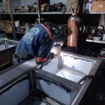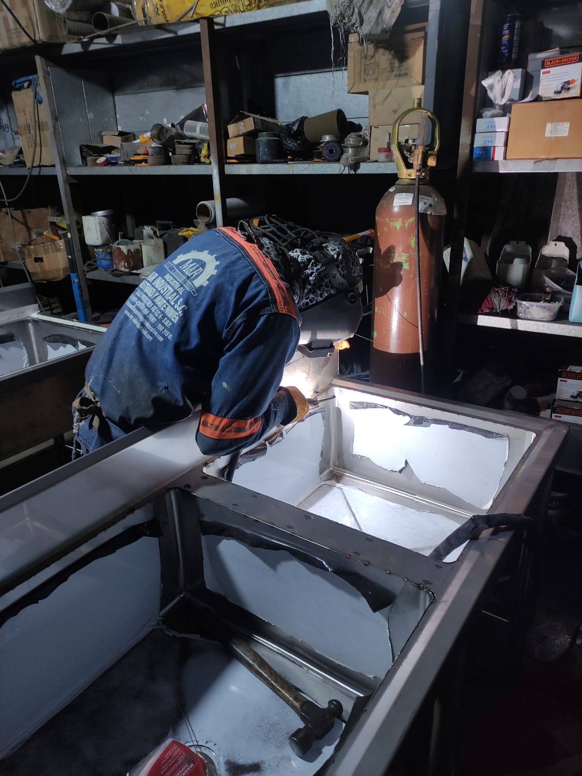 La construcción técnica incluyó el montaje de soportes reforzados capaces de resistir el peso de canastillas industriales cargadas. Se realizaron las perforaciones y ajustes para la instalación de válvulas de pedal y grifos tipo ducha, verificando que cada conexión fuera 100% hermética mediante pruebas de presión hidrostática. El acero inoxidable fue tratado post-fabricación para recuperar su capa pasiva, asegurando resistencia total ante agentes químicos de limpieza.